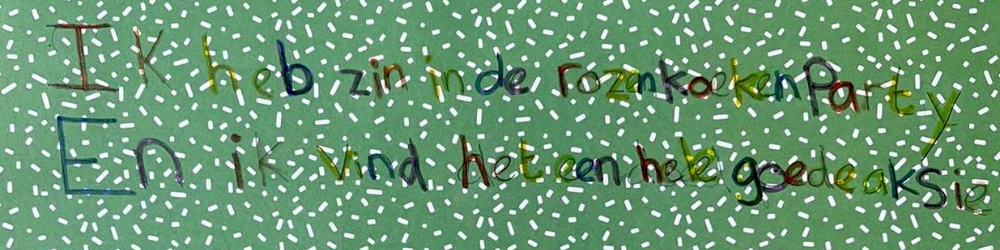 De gebeurtenissen van vorige jaren hebben buurtbewoners en mensen die in de buurt werken geraakt. Jong en oud. Twee jonge bezoeksters van de Roze Koeken Party maakten er een prachtige tekening van en schreven ‘Ik heb zin in de rozenkoekenparty En ik vind het een hele goede aksie’.