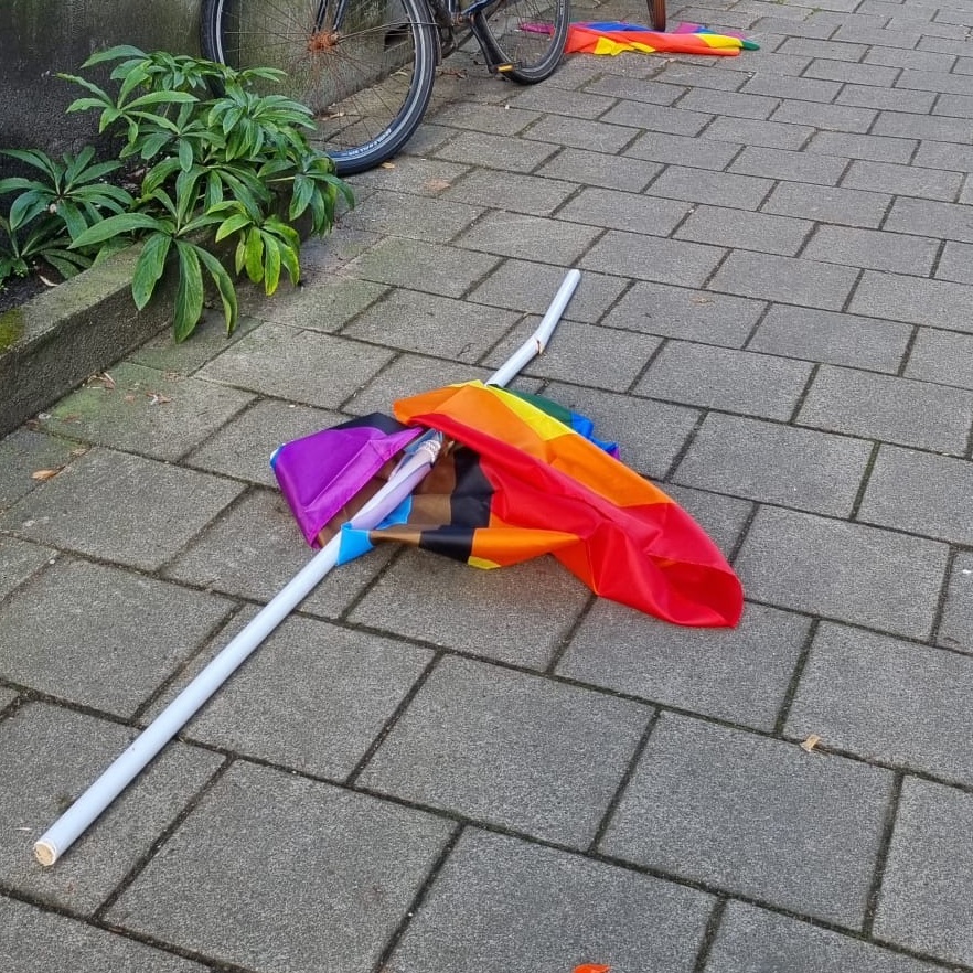 De politie neemt Pride-vlag vernielingen heel serieus.